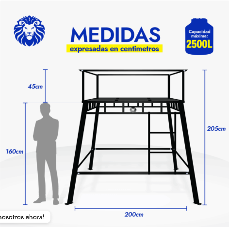 Diseñada para máxima resistencia y durabilidad. Soporta hasta 2500L con total seguridad. Armable, fácil de instalar y compatible con todas las marcas. ¡Ideal para proyectos exigentes